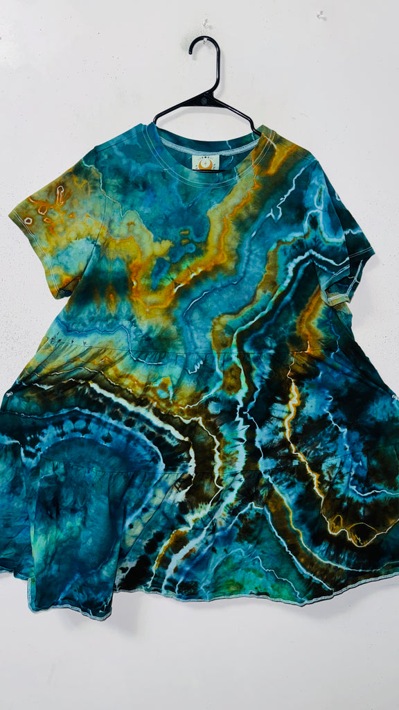 23" pit to pit laying flat, free belly and hips, and 36" long!