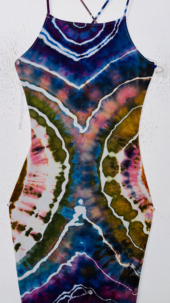 12" pit to pit but the lace in the back lets it get bigger, stretchy as well! hips are 15" wide and 52" long , slit in the back