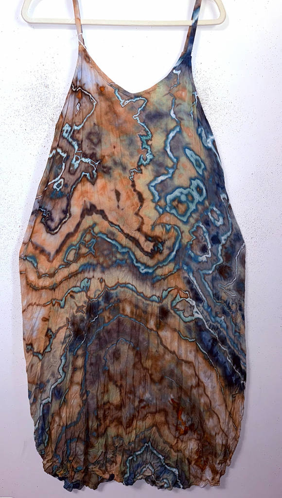See size chart in the photos. This tie dye maxi dress is light as a feather. Last summer I got poison ivy all over and this style dress was my saving grace, it feels like you’re naked! It is oversized everywhere except the chest. Check the size chart, it has no stretch it is 100% rayon