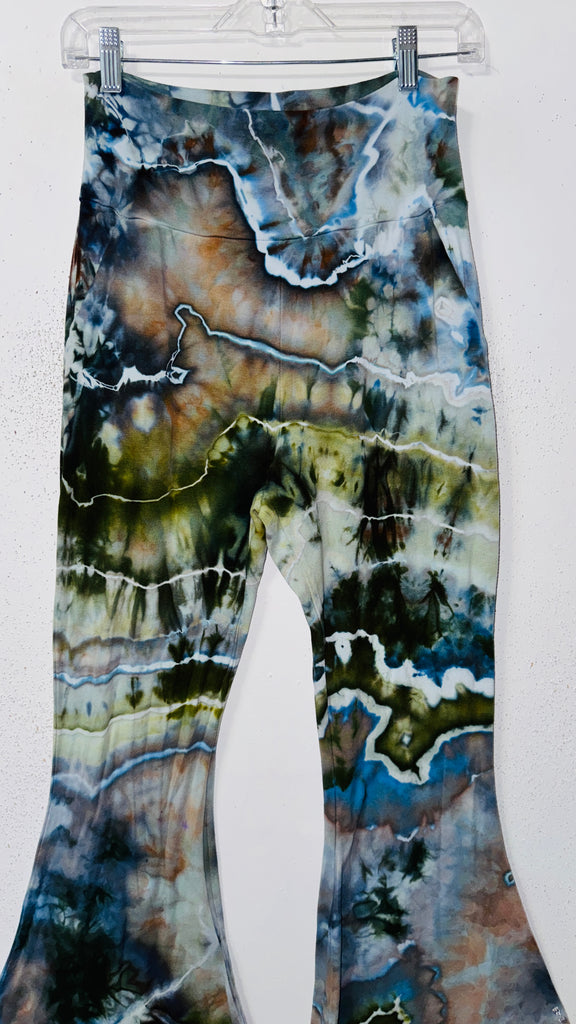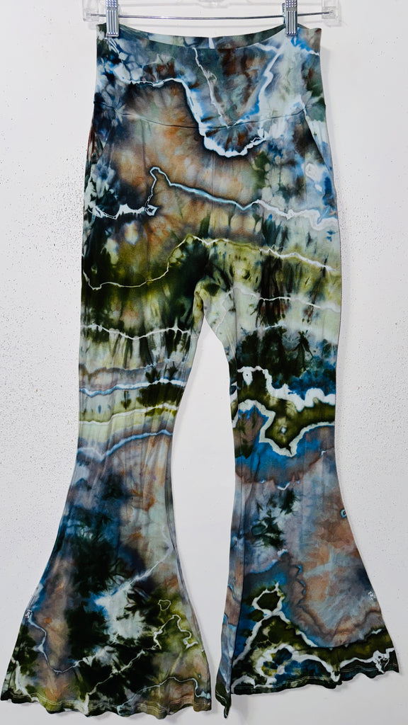8" rise if folded over for a low waist, or 12" rise if not folded over for a high waist! waist is 14" wide laying flat, 32" inseam