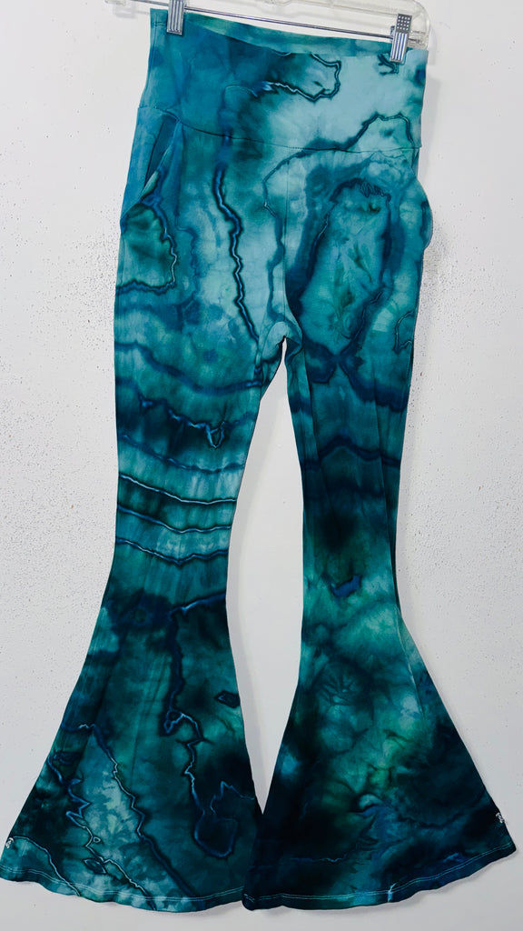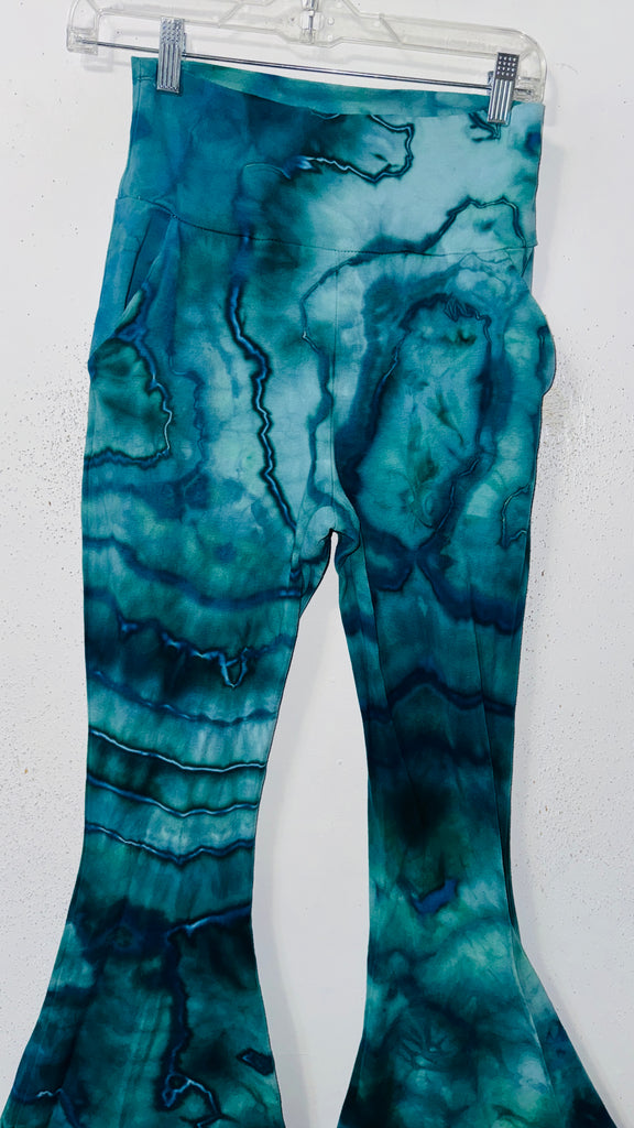 8" rise if folded over for a low waist, or 12" rise if not folded over for a high waist! waist is 125" wide laying flat, 32" inseam