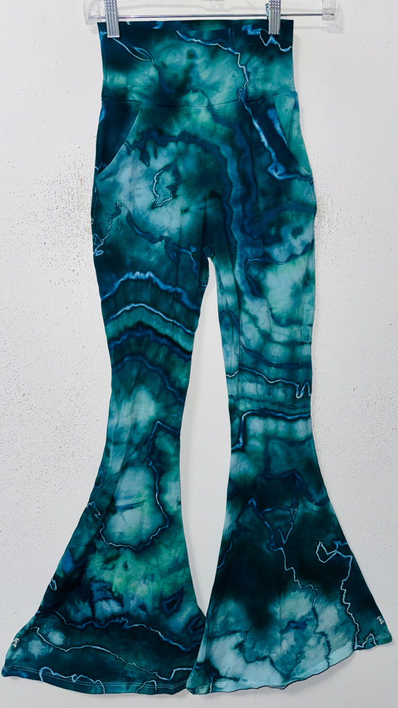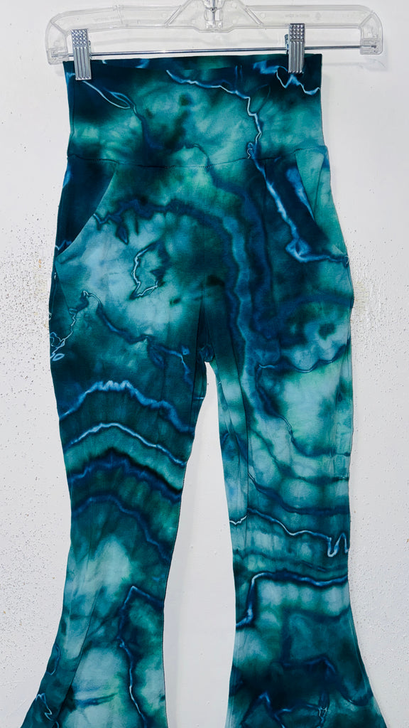 8" rise if folded over for a low waist, or 12" rise if not folded over for a high waist! waist is 11" wide laying flat, 29" inseam