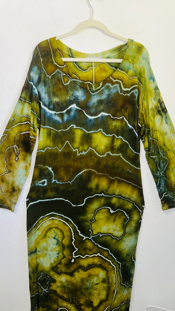this is such a fun comfy style! it's loose, and has pockets and a modest slit on one side. it can fit a medium as welll, it's a loose comfy fit :)