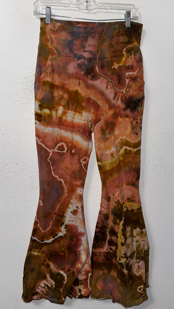 8" rise if folded over for a low waist, or 12" rise if not folded over for a high waist! waist is 14" wide laying flat, 32" inseam